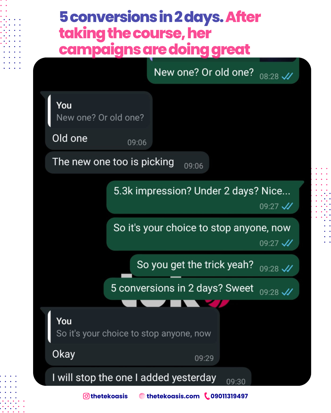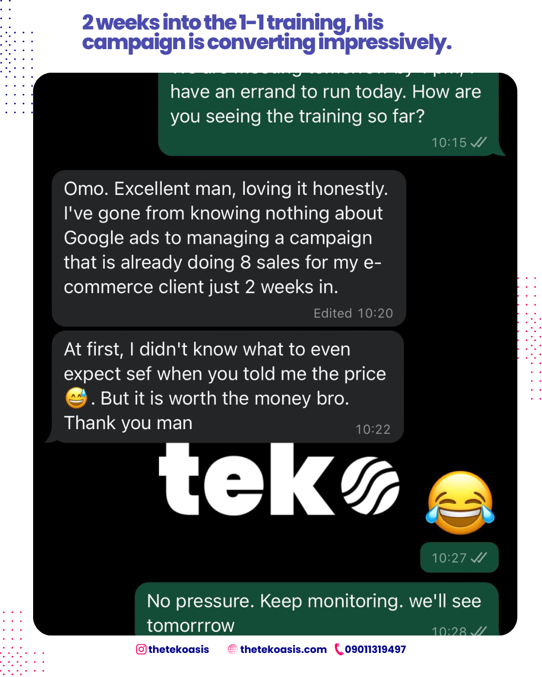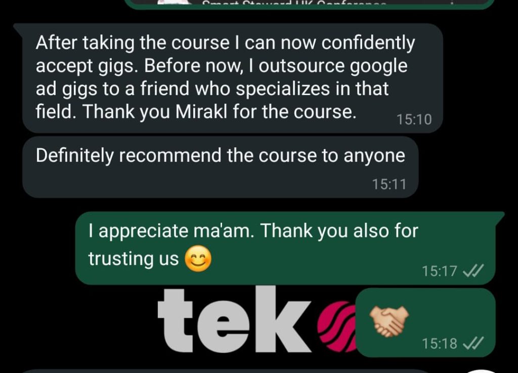 He has trained over 400 students [business owners and aspiring marketers], empowering them with his experience and expertise in Google and Facebook ads to generate millions and kick-start their careers or upskill.